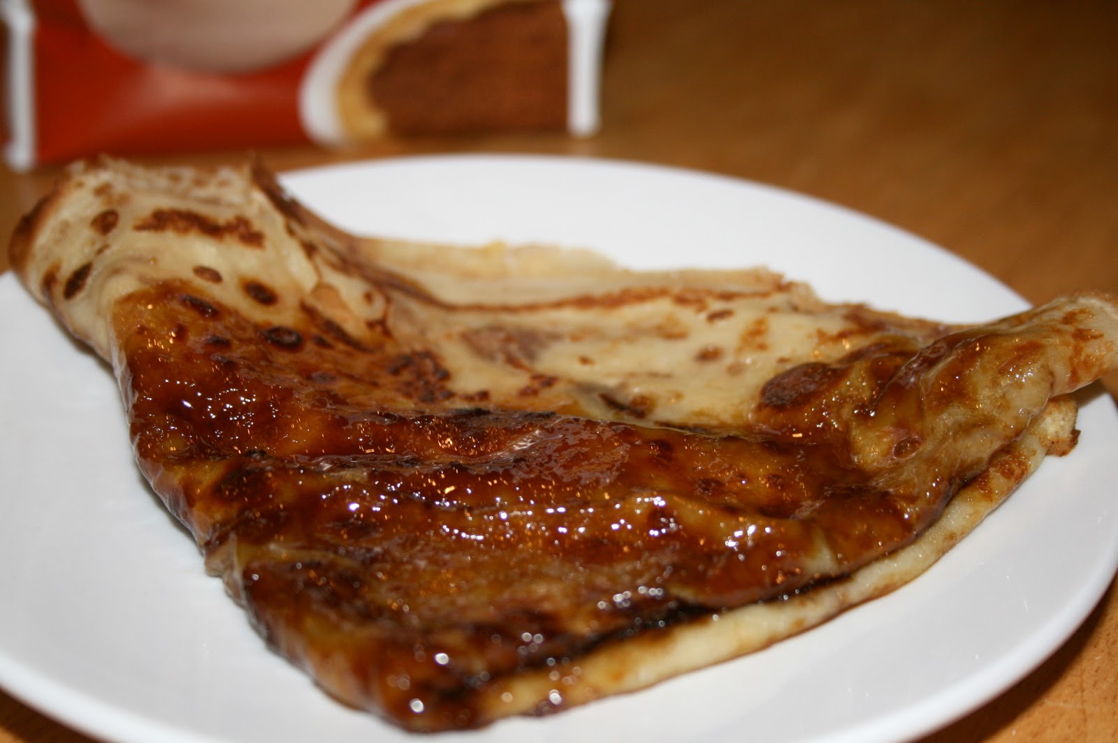 Laisser cuire quelques instants, puis plier la crêpe et servir aussitôt. La crêpe se retrouve entourée d'une fine couche de caramel un peu croquante... délicieux!